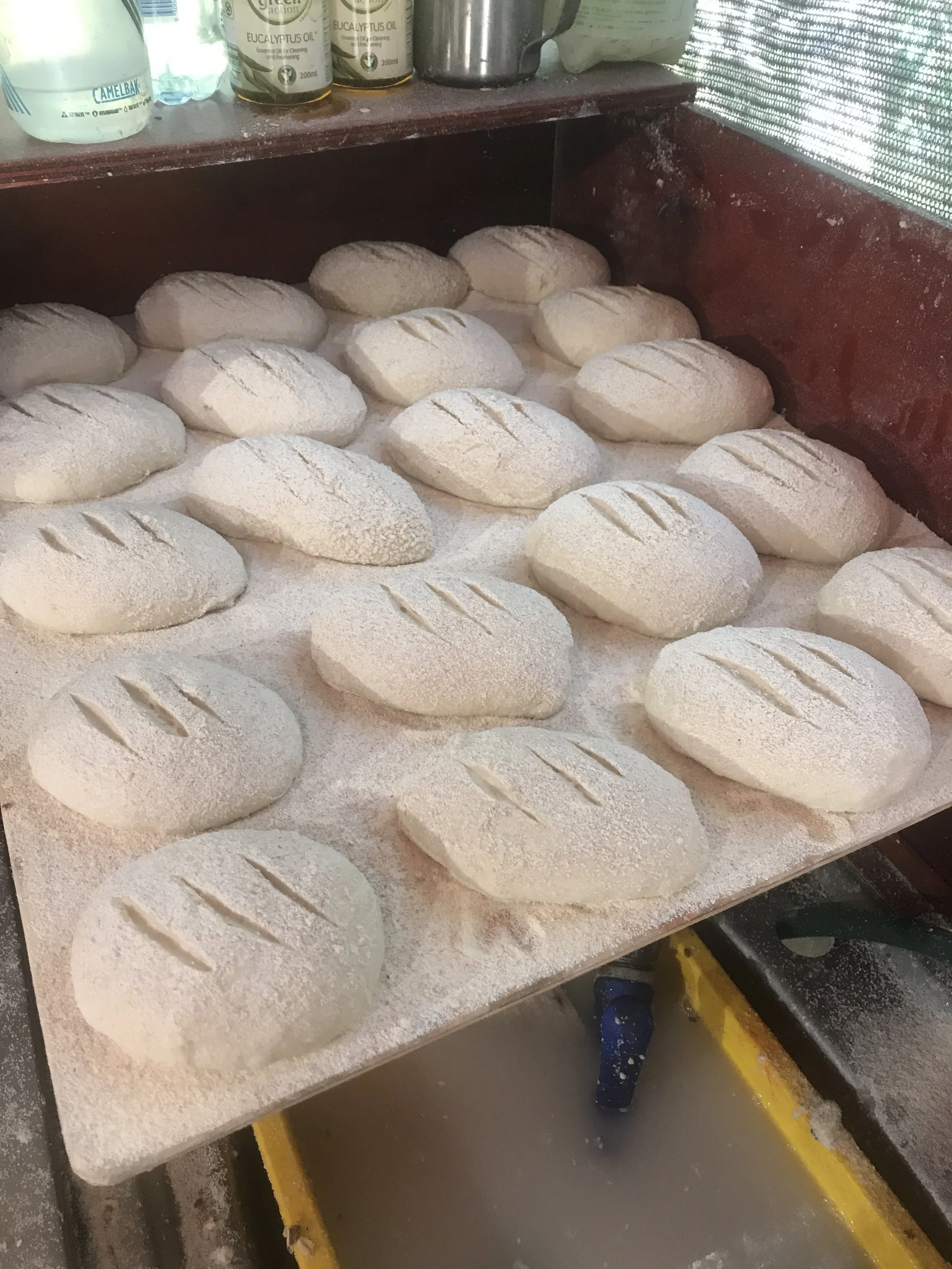 This one has 4 removable steel plates, as well as a steel base plate to bake on. This means you have 5 baking decks, each one holding approximately 4 large free form loaves. The oven will accept triplet tins, dutch ovens, cake molds or whatever. Deck size is 400 x 500mm, but can handle trays up to 550 in length. Deck height is 1600 mm with this configuration.