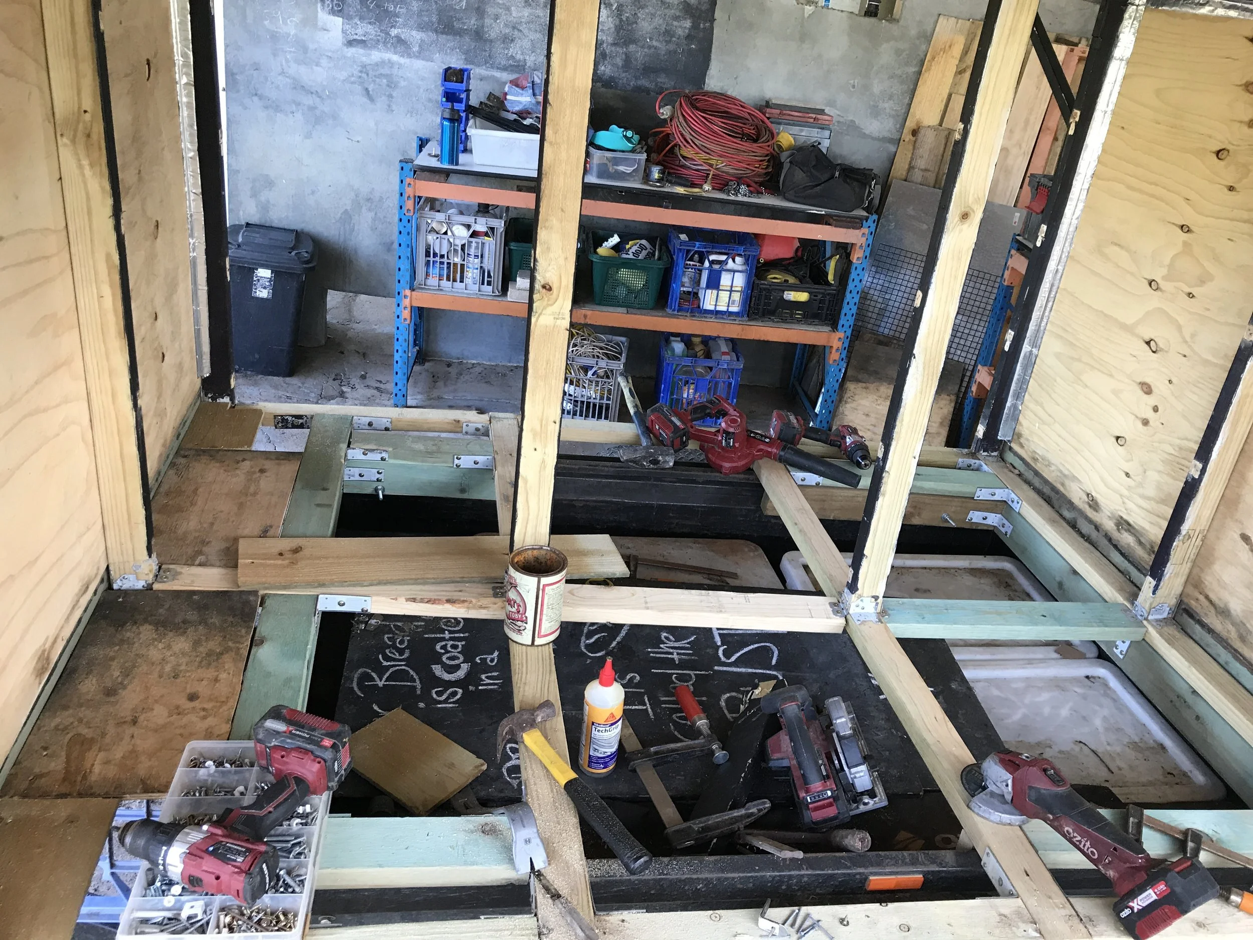 For this project, I've set myself some really tricky challenges - not the least of which is to build the Bush Bakery Mk II almost entirely from existing materials - a kind of re purposing/recycling process. Essentially, I'm stripping out the inside of what was the shop trailer, and then turning it into a mobile baking classroom-cum-sleeping quarters for the Tour Down South.