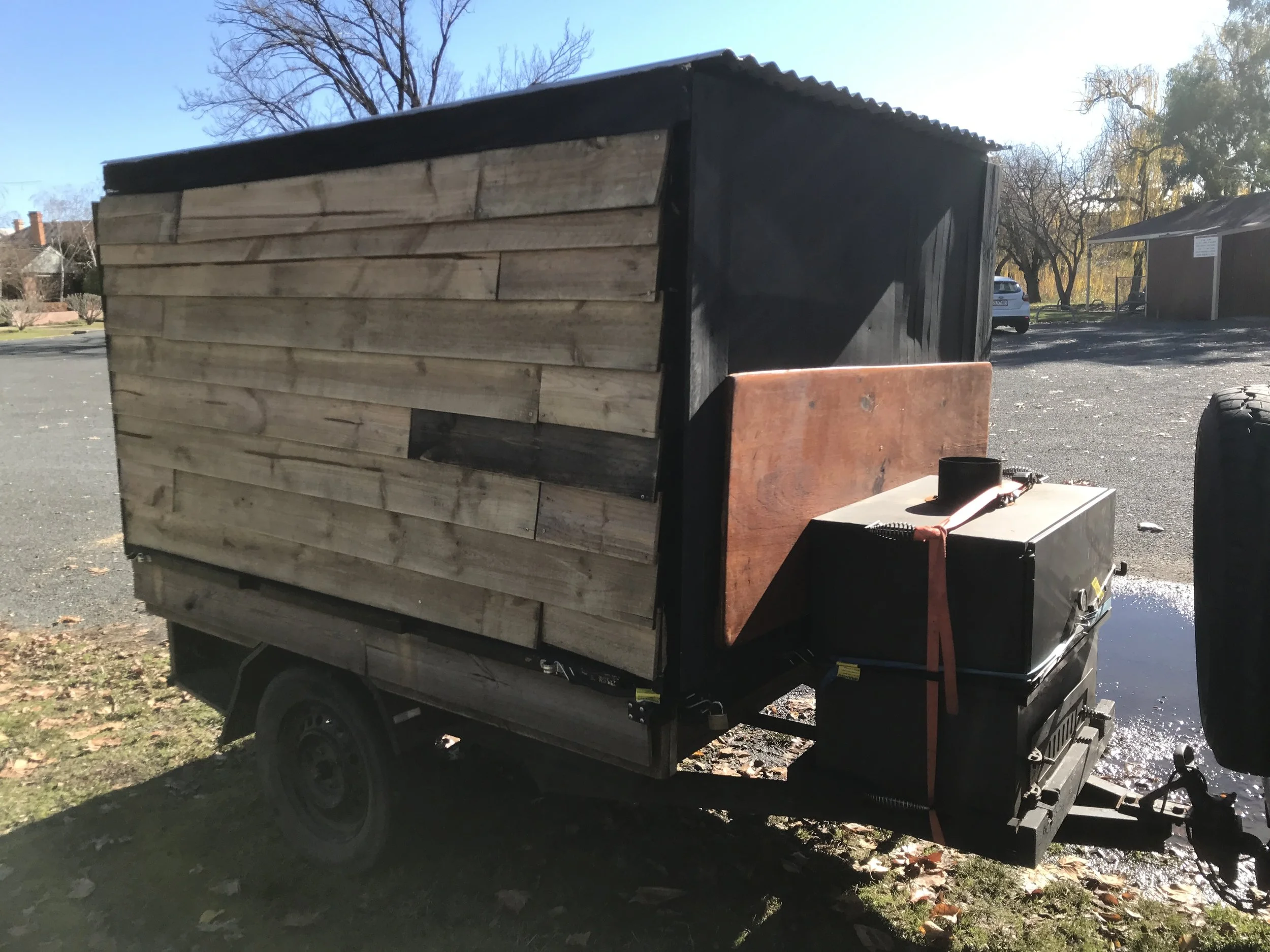 They found a space in the large woodshed for me and the Bush Bakery, so while it rained regularly, I was dry and had a chance to work on my cold weather setup while we worked on the various pre production processes in anticipation of the Blumes bakery re- opening - only months away. Their efforts inspired me to improve the trailer, which took the form of the addition of some old corrugatred iron on the wings. Dave donated some old iron, and helped me put it on. Gotta say, the trailer feels so much more solid now that it's coated in a layer of (recycled) steel!